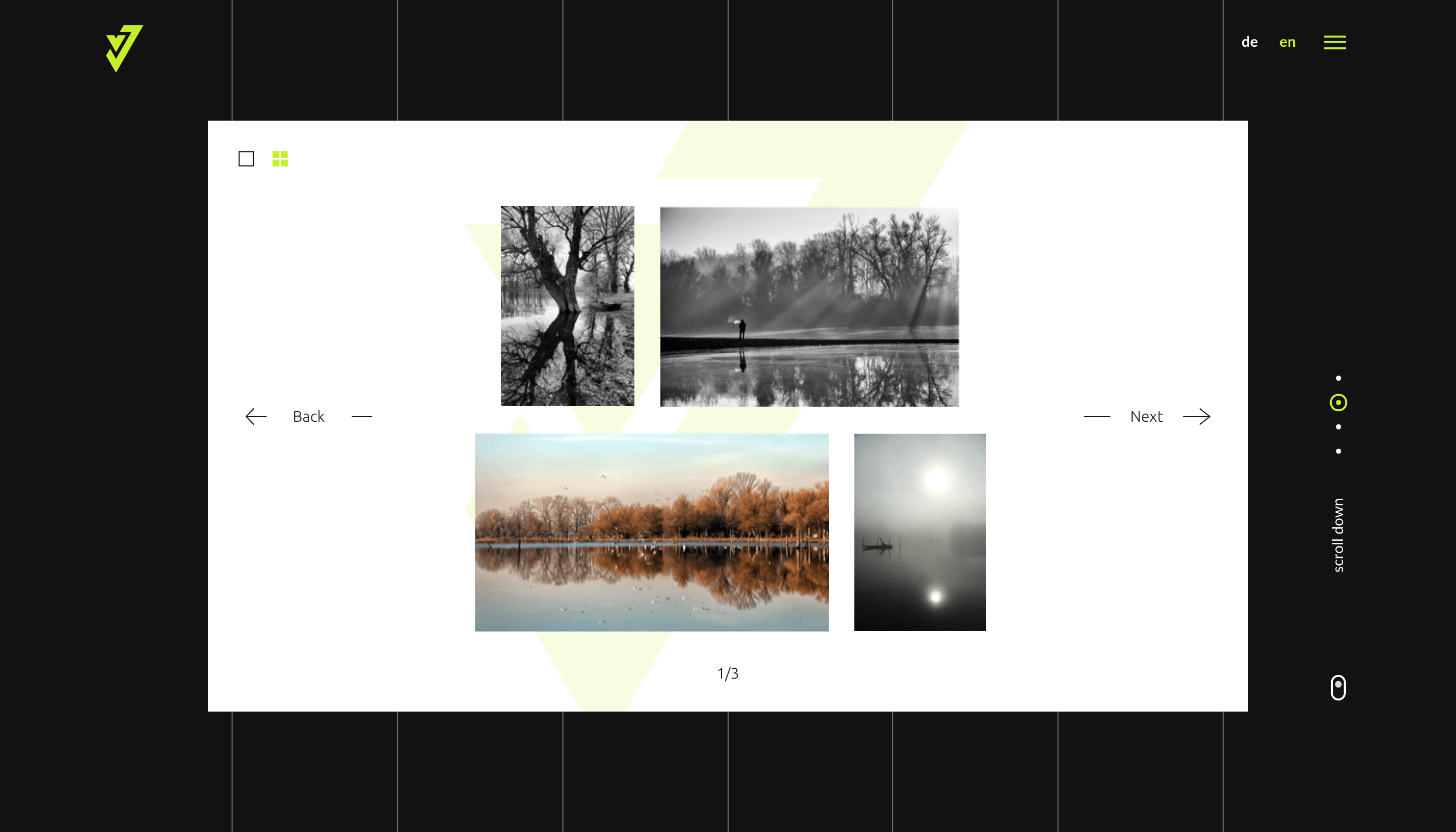 Gallery has two different layouts for displaying photographies, with multiple images and with a single one.
