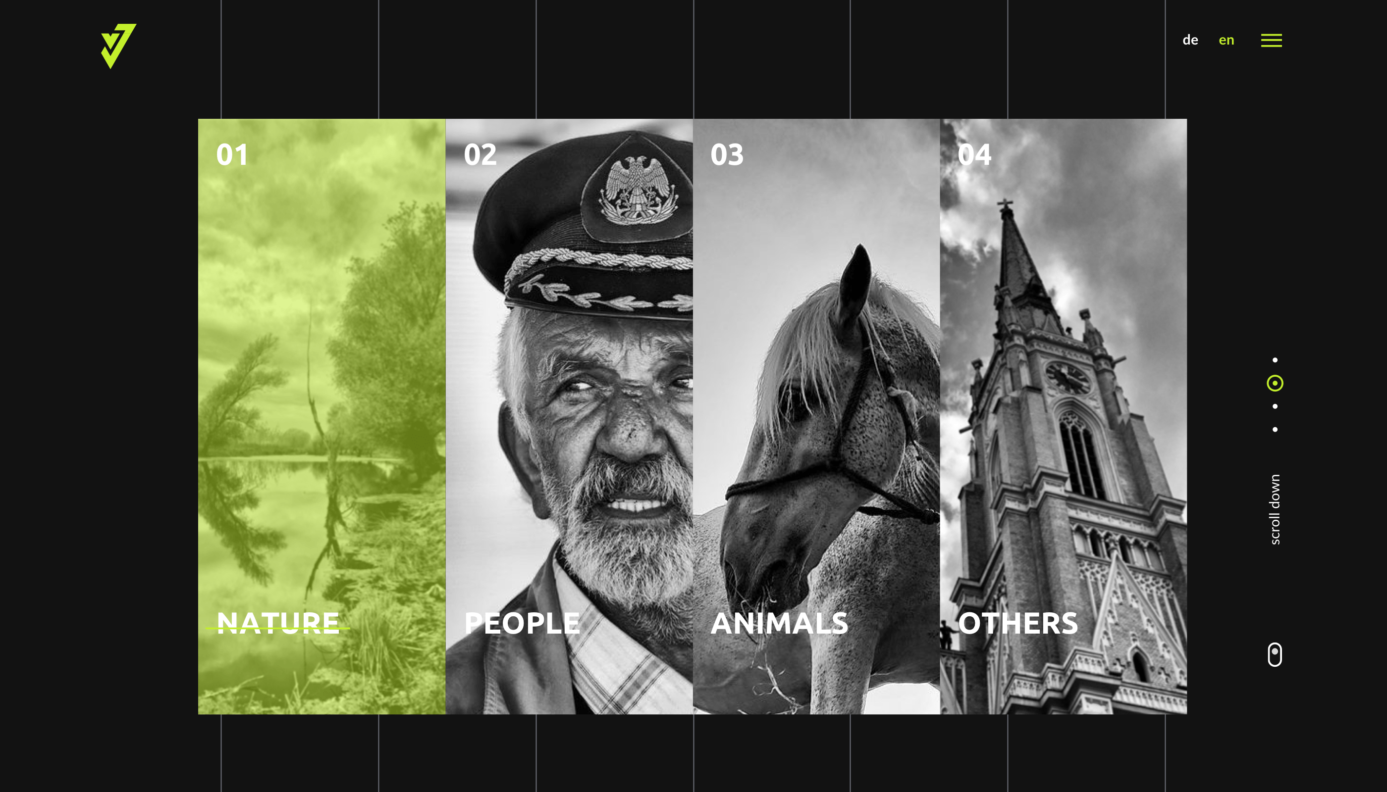 There are 4 static categories and click on one is leading to the photo gallery that is presented below.